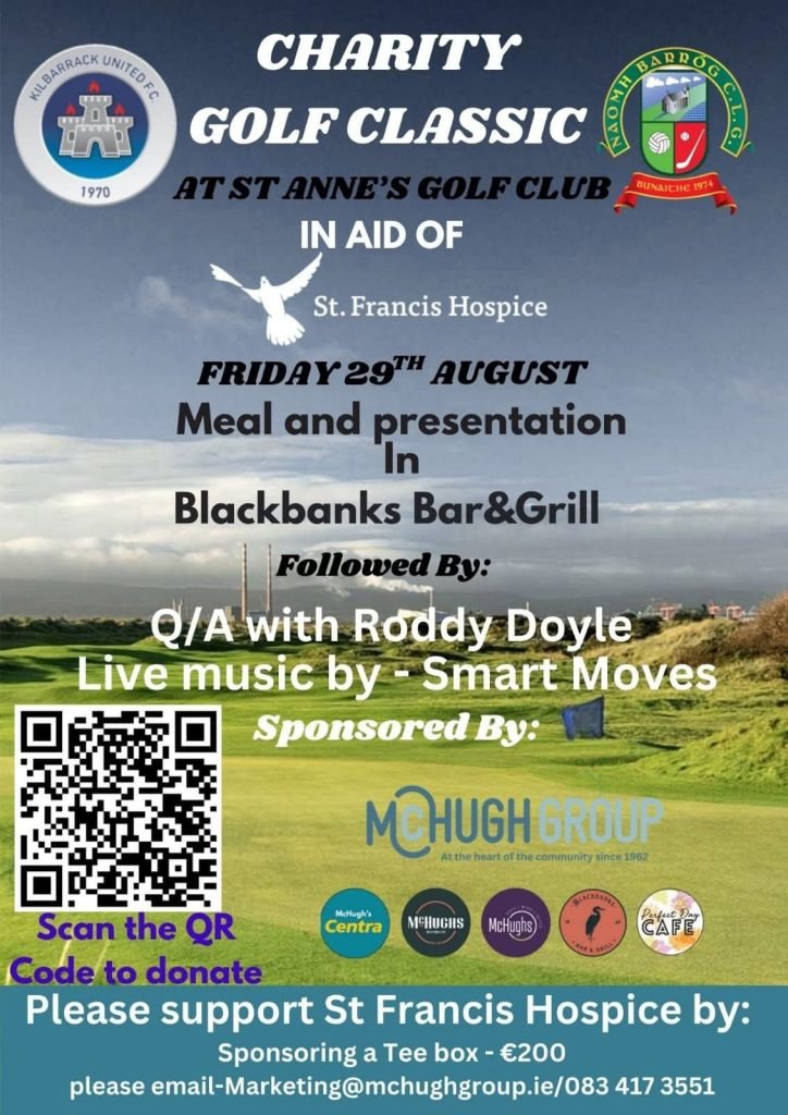 Kilbarrack United have teamed up with Naomh Barróg CLG to run a Charity Golf Classic at St.Annes Golf Club in Aid of St.Francis Hospice 💙🕊 The event will be held on the 29th of August with a meal and presentation in the Blackbanks Bar & Grill followed by a Q&A Irish author and screenwriter, Roddy […]