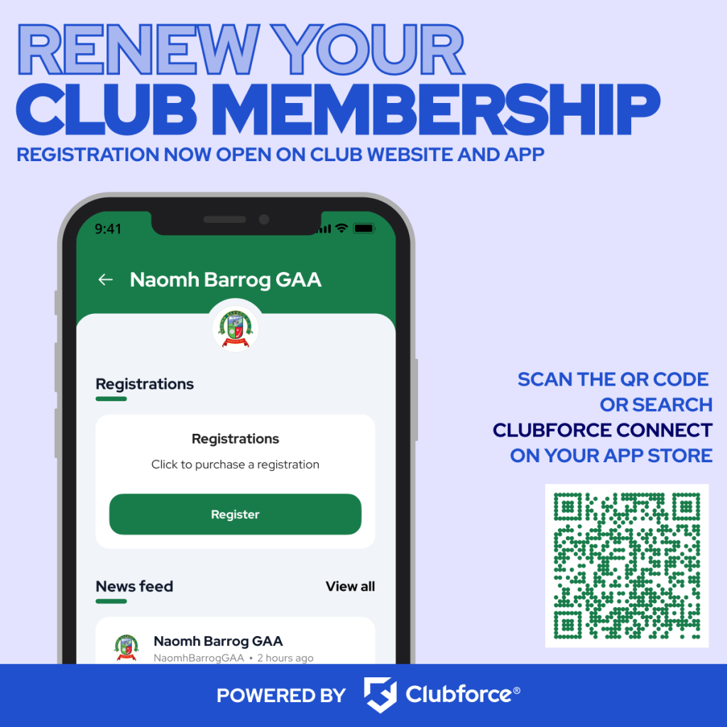 Club Membership is now open, and with an offer of a 4-month payment plan. Membership will close on February 28th of this year. Following discussions at the recent AGM, a modest increase in fees has been implemented across all categories. When selecting your team please remember that you are choosing your team for 2025 https://naomhbarroggaa.clubforce.com/