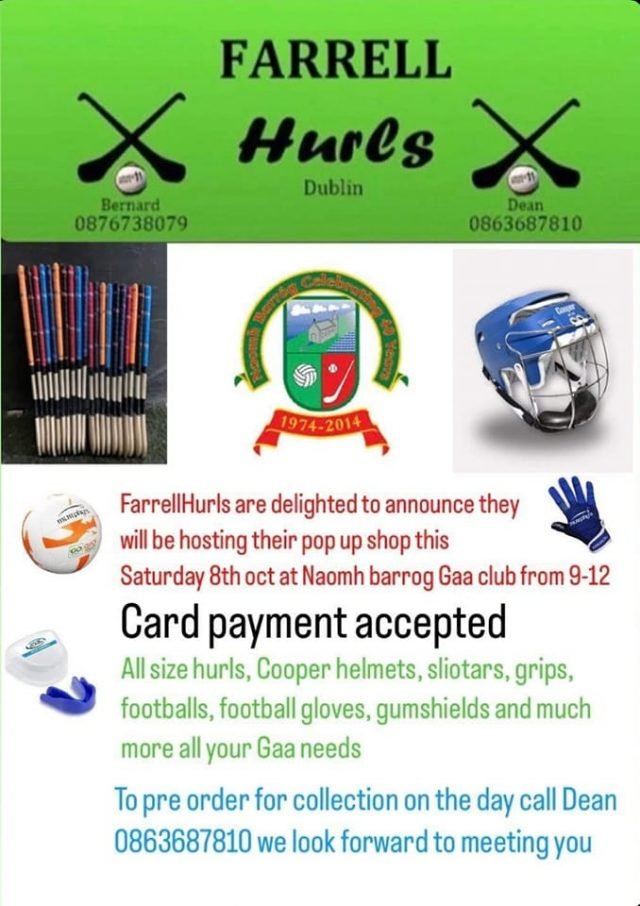 Farrell Hurls Pop-up Shop in Naomh Barróg this Saturday