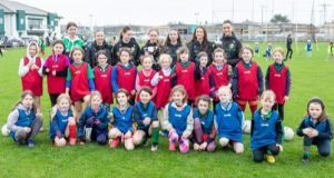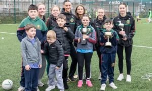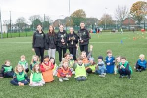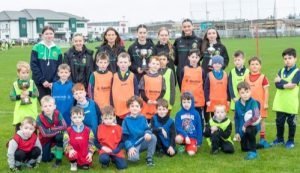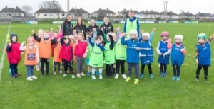 Our Minor girls team brought down their Camogie League/ Championship and Football League Cups to show all the boys and girls.