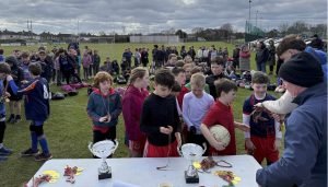 The club hosted a 4 school GAA blitz through Irish in the club on 13/3/25 last as part of Seachtain na Gaeilge. Over 120 pupils from Gaelcoil Neasáin , Gaelscoil Inse Cóir, Gaelcoil Colmcille and Scoil an Duinínigh took part with all interactions conducted though Irish. This was a tremendous success. Thanks to our GPO Liam McCuirc, referees Ewan, José and Jen, groundsman Mick , Aubrey for facilities, Dick Fields, Tom Glynn, Paul Kelly Austin Keegan and Frank Downey for all the help on the day.