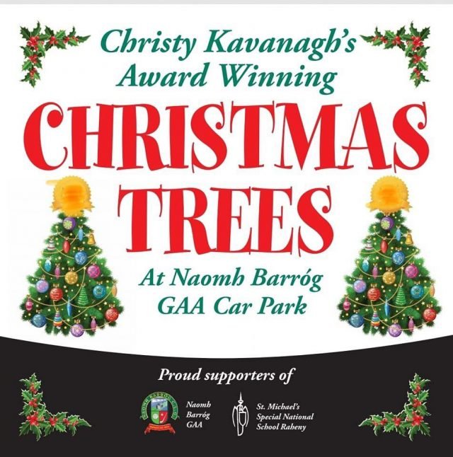 Christy Kavanagh’s award winning Christmas trees are now for sale in Naomh Barróg car park. They are Irish trees grown in the Wicklow mountains. These trees are supplied by Paul Croft of Get Fresh Super Foods Castleknock