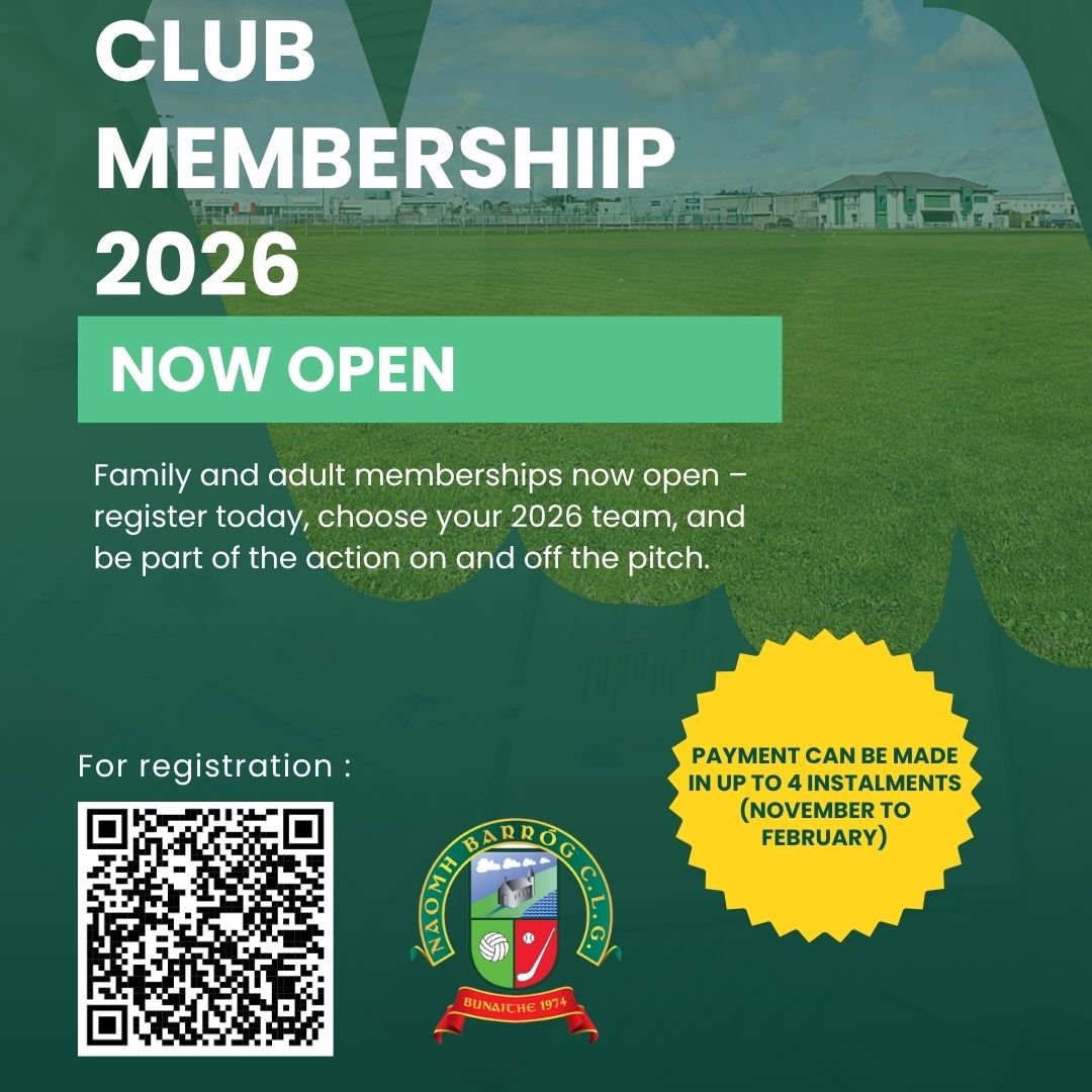 Naomh Barróg GAA Club was founded in 1974 for the well-being and welfare of young people in our Community. We use Gaelic Games, Football/Hurling/Camogie and Cultural Activities to challenge them to grow with confidence and self-esteem, where sport creates a communal spirit that brings people together in a cohesive manner in search of common goals.