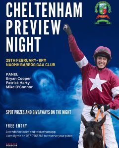 We will be running a Cheltenham Festival Preview on Thursday 29th February at 8pm in our Club Bar.